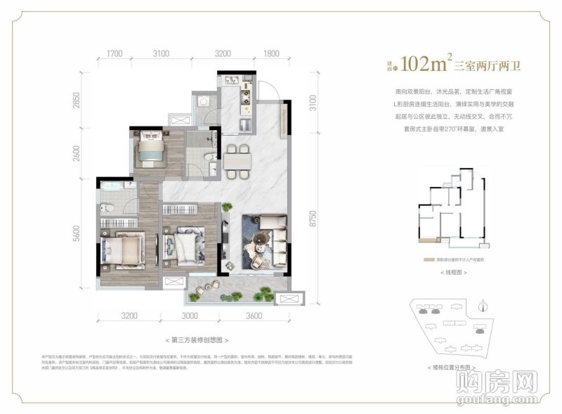 新城德商蓉御天驕120戶型(3室2廳,102平,南)