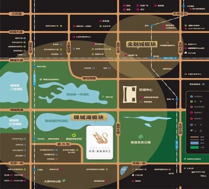 中洲錦城湖岸在益州大道和天府一街的交匯處,和蒙彼利埃小學一街之隔,這個學校是成都已經投用的三所國際公立學校之一,師資力量雄厚,該小區(qū)的對口中學是名氣響當當?shù)氖抑袑W。生態(tài)資源有錦城湖公園、桂溪生態(tài)公園,環(huán)境優(yōu)越。商業(yè)配套有環(huán)球中心、鐵像寺水街,能夠滿足住戶的日常生活需要。項目周邊有益州大道、劍南大道、天府大道,交通配套還有還有地鐵1號線、5號線,出行選擇多,交通便利。